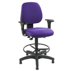 Encosto regulável na altura. Apoio lombar integrado, proporcionando ótimo conforto e ergonomia.