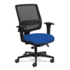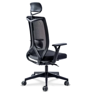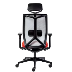Encosto em tela flexível de alta resistência. Apoio lombar independente, regulável na altura.