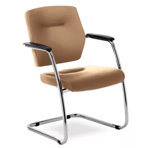 Assento estofado, espuma com densidade controlada (45 a 55 kgf/m3). Possui regulagem de profundidade.
